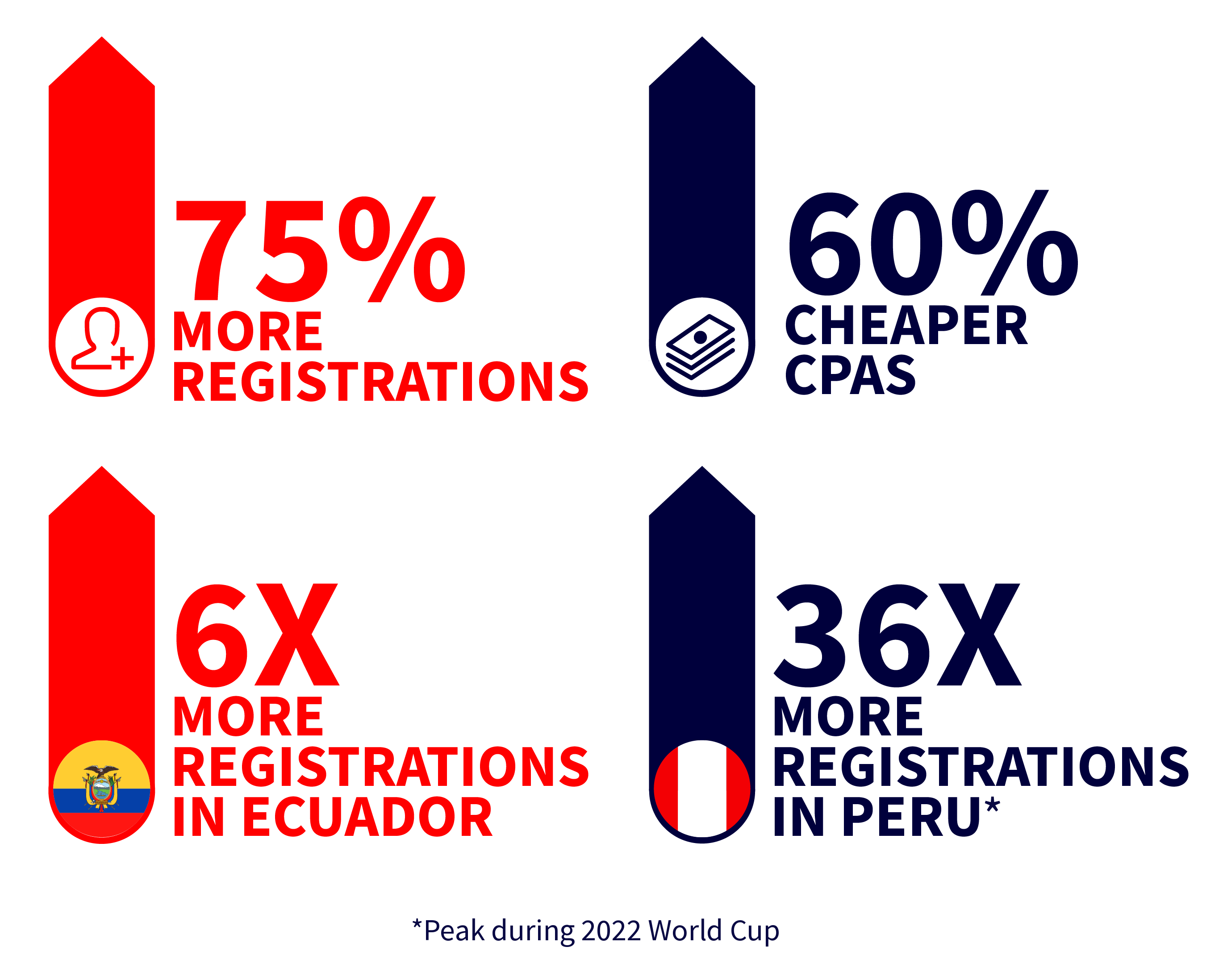 In Peru, Doradobet reached a peak of 36 times more registrations during the 2022 World Cup compared to the time before.